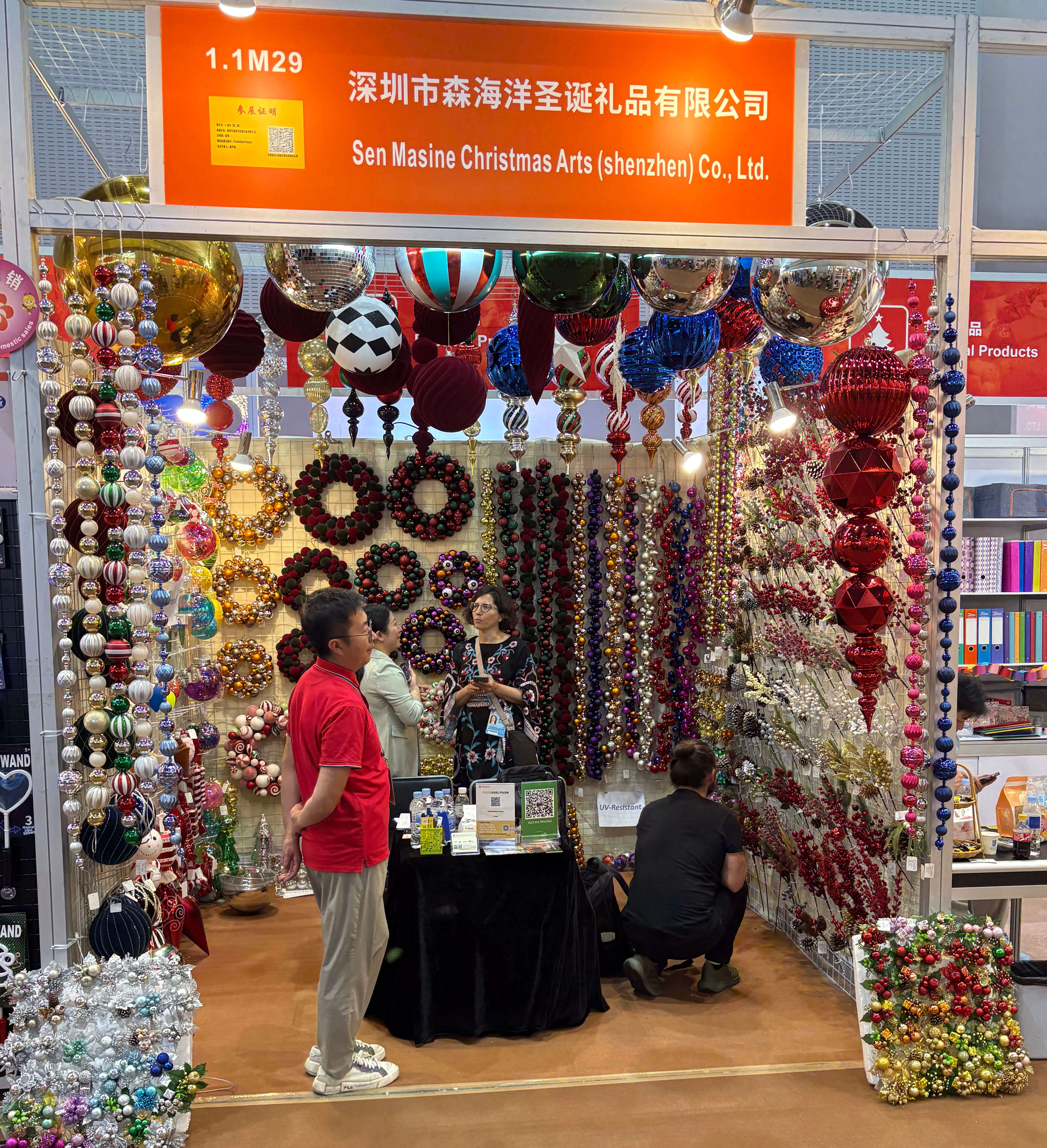 Sen Masine Christmas Arts (Shenzhen) co.Ltd . successfully concluded the Canton Fair (China Import and Export Fair) from April 23rd to 27th, 2026. The number of exhibitors was continuous and steady,and the participants in the exhibition were also very interested in our products,such as PET balls and special-shaped decorative Christmas balls.